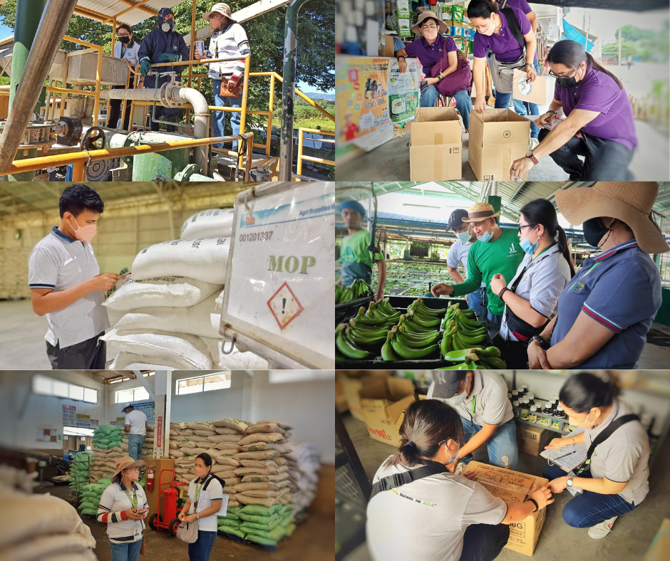 Warehouses and mixing stations of Lapanday Foods Corporation and DOLE Philippines were also monitored. Both were found compliant with FPA standards and good housekeeping practices such as tidiness, good product storage and stacking, use of appropriate PPEs by the personnel, existence of emergency shower and eye wash stations, proper waste disposal and availability of spill kits, fire extinguishers, good floor construction, good ventilation, and presence of safety and warning signs. The station workers also practice triple rinsing.