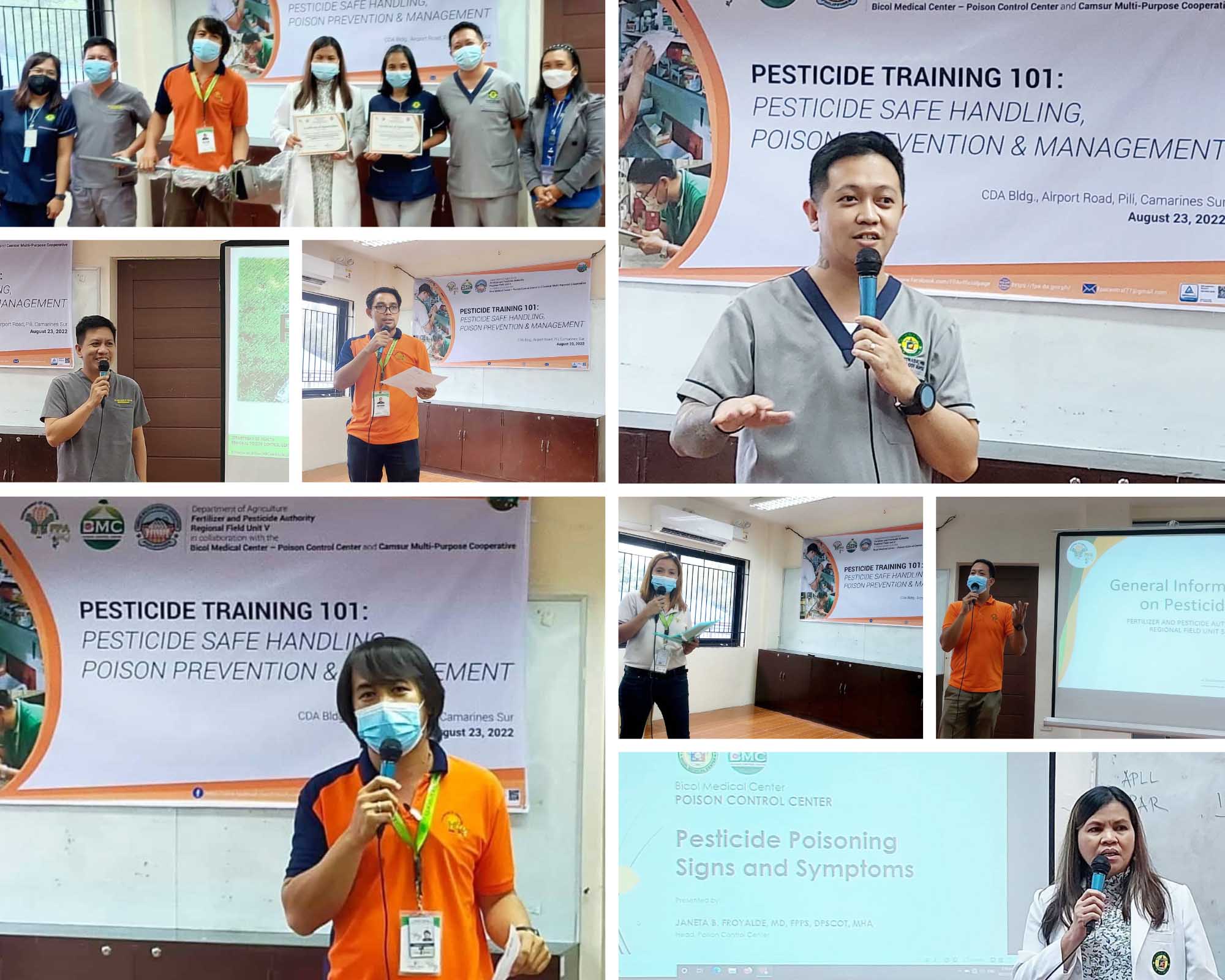 PILI, CAMARINES SUR | August 24, 2022 – The FPA Bicol in collaboration with the Department of Agriculture – Regional Field Office V (DA-RFO5), Bicol Medical Center-Poison Control Center and Camsur Multi-Purpose Cooperative conducted the “Pesticide Training 101: Pesticide Safe Handling, Poison Prevention and Management” on August 23, 2022, at CDA Bldg., Airport Road, Pili, Camarines Sur.